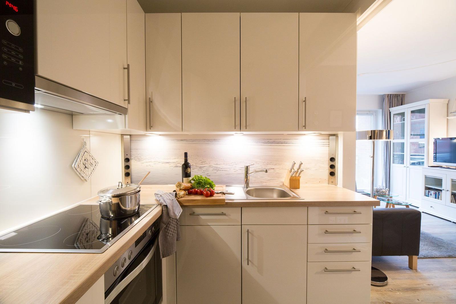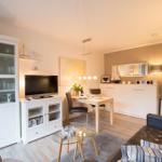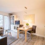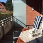 Die Ferienwohnung Strandflieder befindet sich im 1. Obergeschoss des Hauses "Seeadler" in Wittdün auf Amrum und bietet eine Größe von ca. 38 qm. Die Wohnung umfasst einen Wohnraum mit einer Couch, einem Sessel, einem Couchtisch, einem Sideboard und einem Gläserschrank sowie Sat-TV. Der Esstisch ist mit zwei Stühlen ausgestattet und bietet Zugang zu einem überdachten Süd-Balkon mit Gartenmöbeln, nutzbar von April bis Oktober. Ein separates Schlafzimmer verfügt über ein Doppelbett (2 x 80 x 210) und ein Nachtschränkchen. Die Küchenzeile im Flur ist mit einem 4-Platten-Ceran-Herd, einer Spülmaschine, einem Backofen, einer Spüle, einem Kühlschrank mit Gefrierfach, einer Kaffeemaschine und einem Wasserkocher ausgestattet. Die Wohnung bietet Schlafmöglichkeiten für 1 bis 2 Personen. Im Keller befinden sich eine Münz-Sauna samt Ruheraum sowie eine Gemeinschafts-Münz-Waschmaschine und ein -Wäschetrockner.