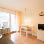 Die Ferienwohnung Dünenrose im 1. Obergeschoss des Hauses "Seeadler" in Wittdün auf Amrum bietet auf ca. 34 qm Platz für 1 bis 2 Personen. Der Wohnraum ist hell und südlich ausgerichtet und ausgestattet mit einer Couch, einem Sessel, einem Couchtisch, einem Sideboard und einem Sat-TV. Ein Schrankbett (2 x 80 x 205) sowie ein Esstisch mit 2 Stühlen ergänzen die Ausstattung. Die offene Küche verfügt über einen 4-Platten-Ceran-Herd, eine Spülmaschine, einen Backofen, einen Kühlschrank mit Gefrierfach sowie die nötigen Küchenutensilien. Das Badezimmer ist mit Dusche, Waschbecken und WC ausgestattet. Zudem steht ein überdachter Süd-Balkon mit Gartenmöbeln (April bis Oktober) zur Verfügung. Für Entspannung sorgt die Münz-Sauna im Keller, wo auch eine Gemeinschafts-Münz-Waschmaschine und ein Wäschetrockner bereitstehen (beides kostenpflichtig).